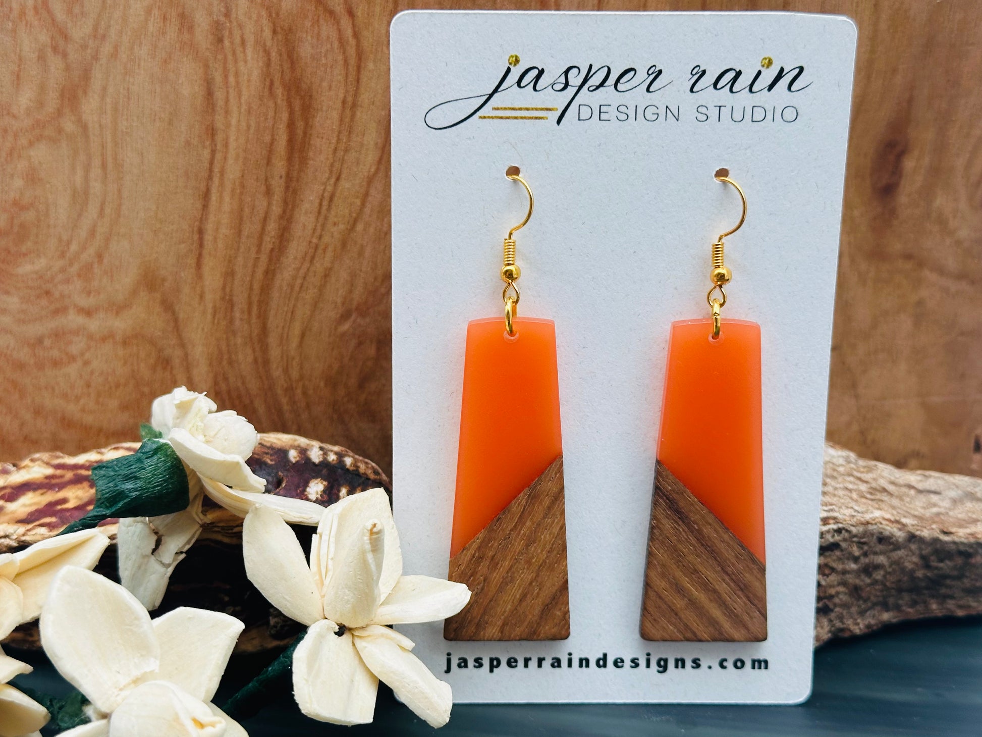 Check out the variety of shape and color. Crafted with a blend of resin and wood, these earrings offer a lightweight design for comfortable wear. Expertly made, they provide a unique and stylish addition to any outfit. Perfect for those seeking a statement piece, these earrings offer a durable and trendy option for everyday wear.