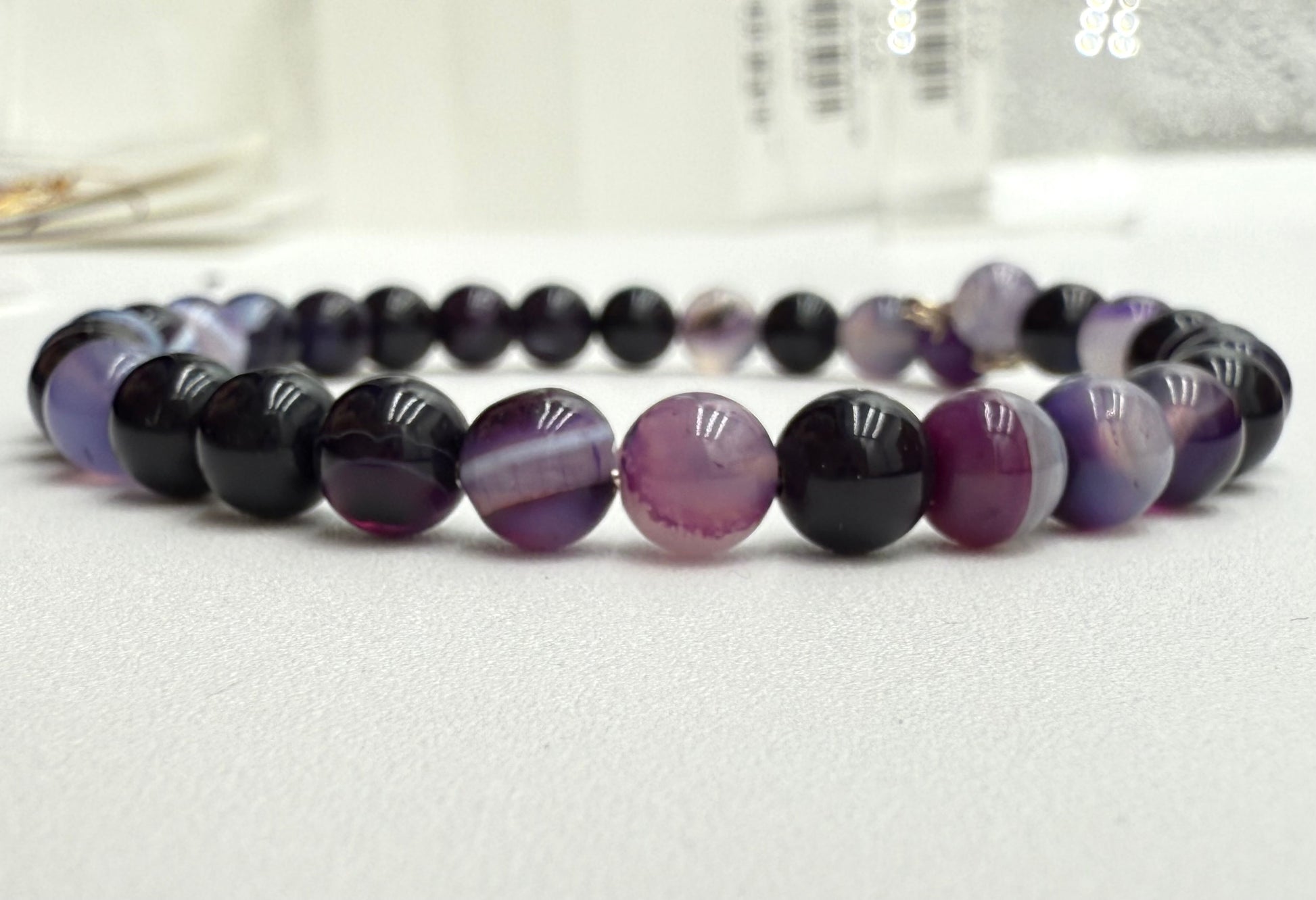 Experience the healing benefits of our Purple Agate bracelet. Made with bright purple agate and stainless steel memory wire, this one-size-fits-all bracelet is both stylish and versatile. Perfect for any occasion, you'll love the calming energy and unique design of our purple agate bracelet.